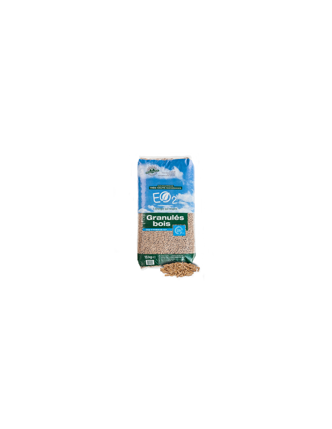Les granulés de bois EO2 certifiés DIN+ se différencient par leur régularité saison après saison, à un très haut niveau d’exigence. Le granulé bois EO2, est reconnu pour sa fiabilité et apporte une source de chaleur à haut pouvoir calorifique.